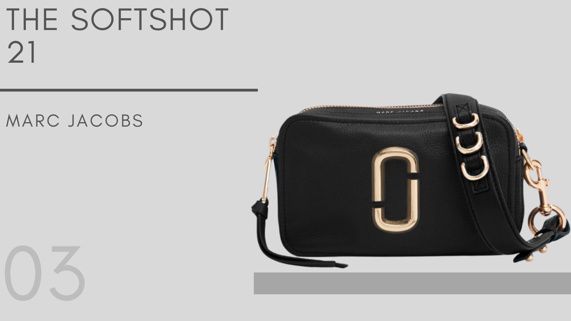 The Softshot 21 โดยใบนี้วัสดุทำมาจากหนังเกรนธรรมชาติ (Grain Leather) มีลักษณะที่อ่อนนุ่มแต่ทนทานต่อการใช้งาน ตัวกระเป๋าเป็นแบบ Crossbody ขนาดเล็ก มาพร้อมสายที่สามารถปรับระดับได้ มีฮาร์ดแวร์ D-ring ที่สายสะพาย ช่องใส่ของเป็นซิปคู่ด้านบน ฮาร์ดแวร์ Bold Double J ด้านหน้าของกระเป๋า สามารถเพิ่มความโดดเด่นได้อย่างสวยงาม ขนาดของกระเป๋า คือ 21 x 9 x 13 เซนติเมตร (8.3 x 3.4 x 5.1 นิ้ว) โดยใบนี้มีราคาอยู่ที่ประมาณ 15,000 บาท