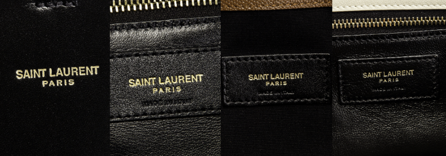 กระเป๋า Saint Laurent ทุกใบจะมี Serial Number อยู่เสมอ ภาพข้างต้นคือตัวอย่าง Brand Stemp แท้ ซึ่งอยู่ภายในกระเป๋า ตัวอักษรจะไม่มีความเลอะเทอะแต่อย่างใด คำว่า “Saint Laurent Paris” ต้องสะกดชื่อเต็มเสมอ ไม่เป็นตัวย่อเด็ดขาด ตัว Brand Stemp จะอยู่ทางด้านในเท่านั้น ก่อนซื้อต้องตรวจสอบการสะกดคำให้ดี เนื่องจากของลอกเลียนแบบางรุ่น จะสะกดคำผิดเพื่อหลีกเลี่ยงเรื่องของลิขสิทธ์ของสินค้า