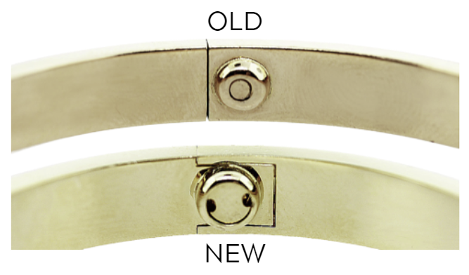 ในส่วนสกรูของกำไลนั้น เราสามารถสังเกตได้ด้วยตาเปล่าอีกเช่นกัน เนื่องจากเป็นตัวล็อคกำไลแขน เมื่อสวมใส่แล้ว ทำให้กำไลไม่หลุด หรือหล่นหาย สกรูจะอยู่ด้านในของกำไลดังภาพตัวอย่างข้างต้น โดยในภาพตัวอย่างนั้น คือ การนำภาพมาเปรียบเทียบกันระหว่าง สกรูแบบดั้งเดิมและสกรูแบบใหม่
